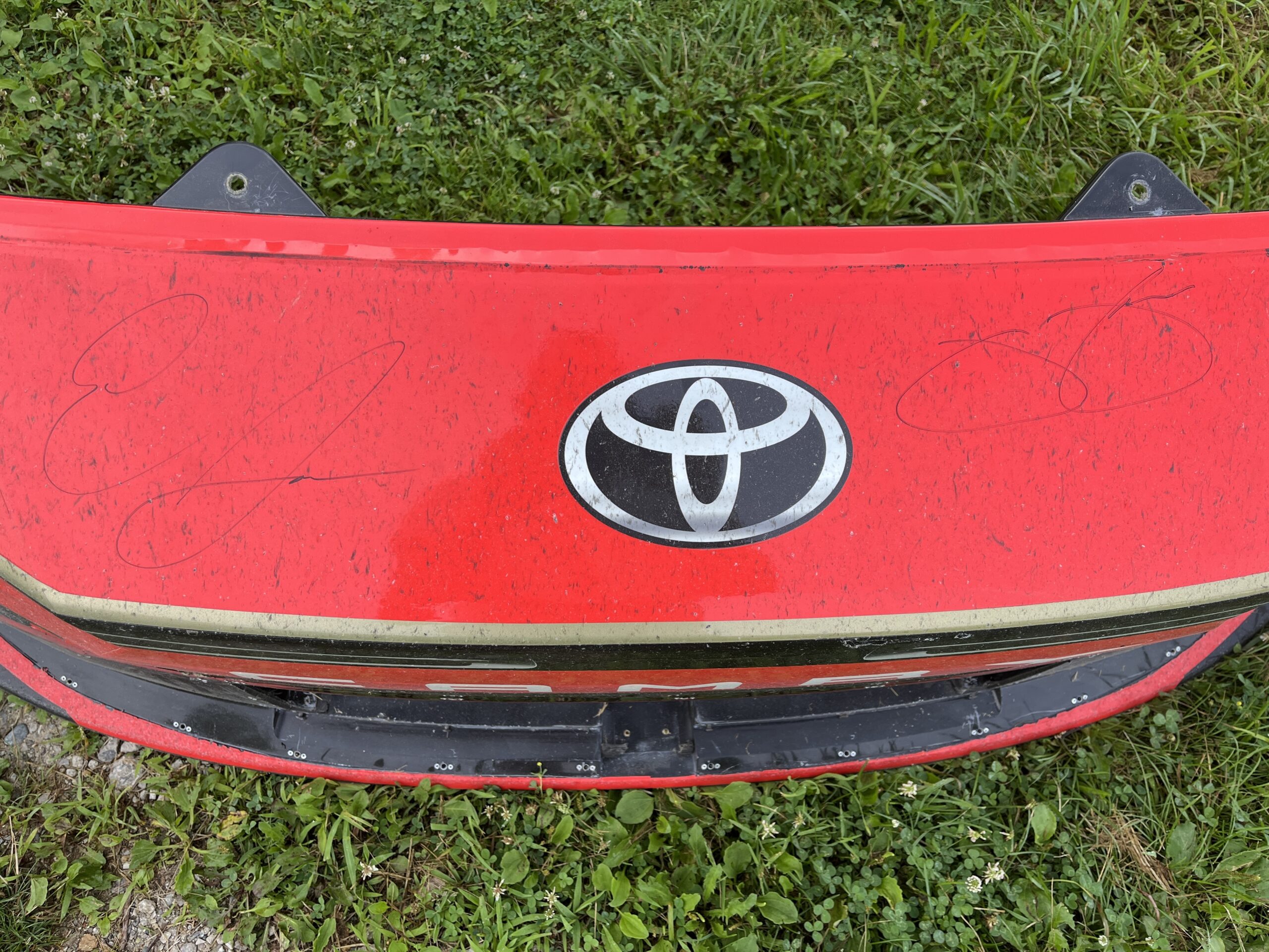 That’s why the Erik Jones Foundation is thrilled to offer a true collector’s gem: the front bumper from Erik’s #43 car raced at Talladega, signed by both Erik and team owner Jimmie Johnson. This isn’t a replica — it’s the real deal, complete with track-earned wear and tear, and available through a limited-time raffle running throughout August.