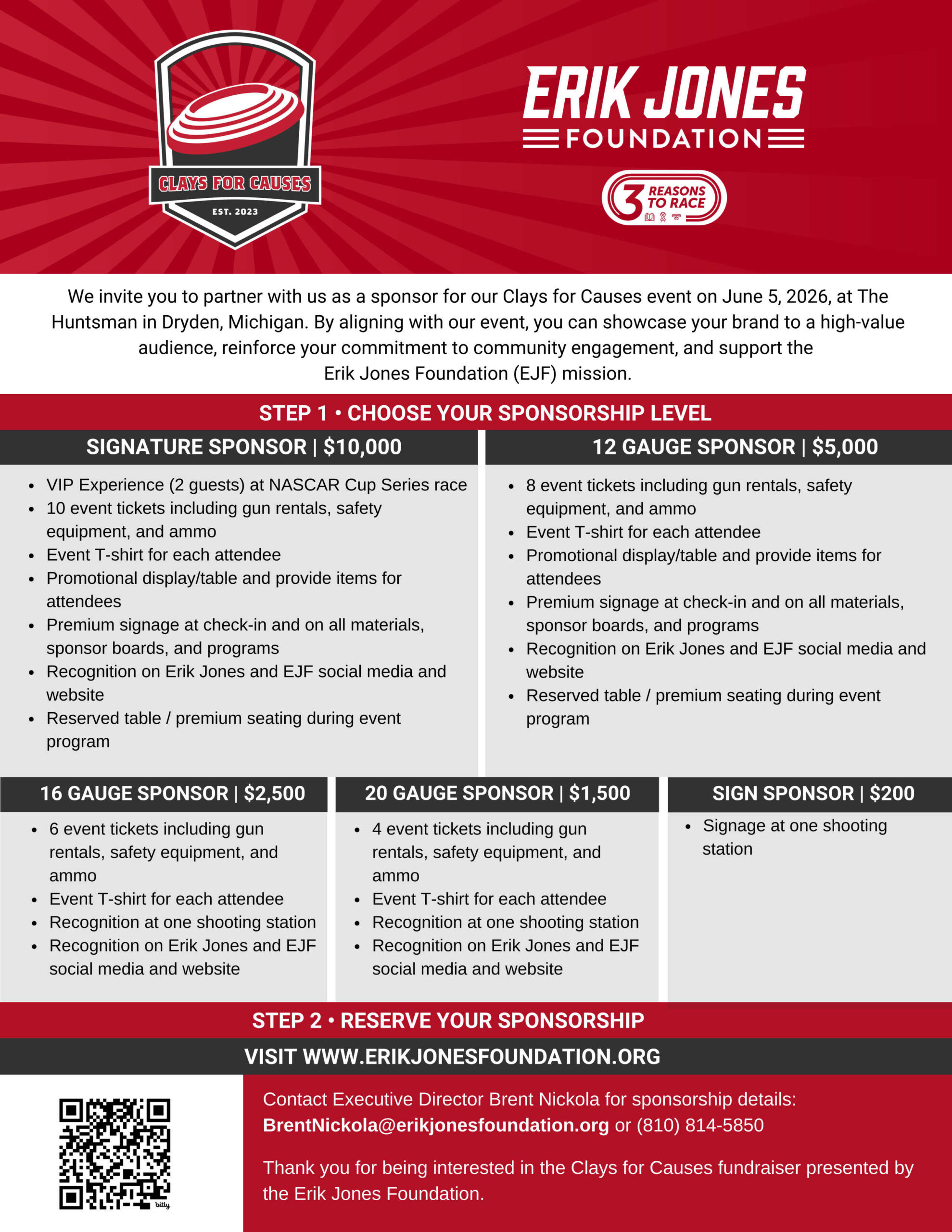 Now in its forth year, Clays for Causes was created by NASCAR Cup Series Driver Erik Jones as a unique and personal alternative to the typical charity golf outing. A proud Michigan native with a deep appreciation for the outdoors, Erik wanted an event that reflected both his roots and his passion for giving back.
