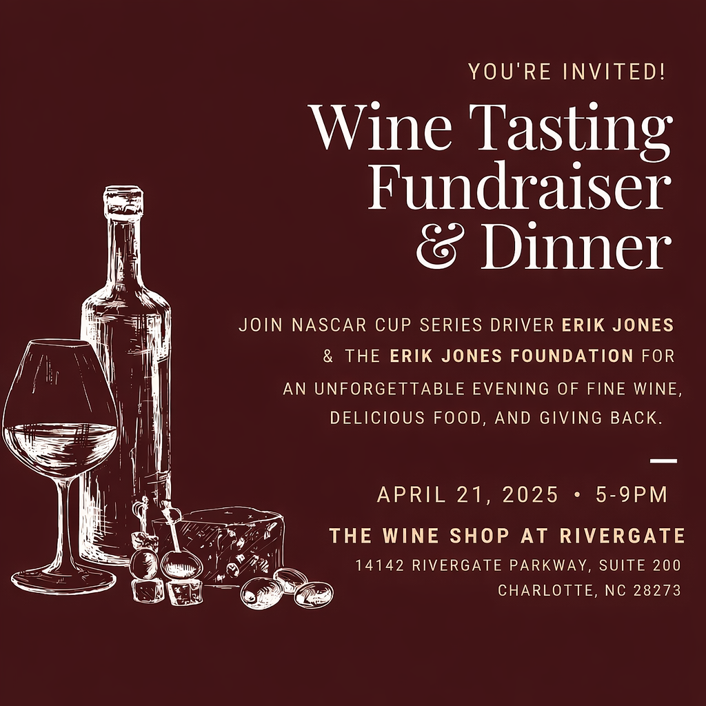 JOIN NASCAR CUP SERIES DRIVER ERIK JONES & THE ERIK JONES FOUNDATION FOR AN UNFORGETTABLE EVENING OF FINE WINE, DELICIOUS FOOD, AND GIVING BACK.